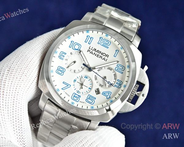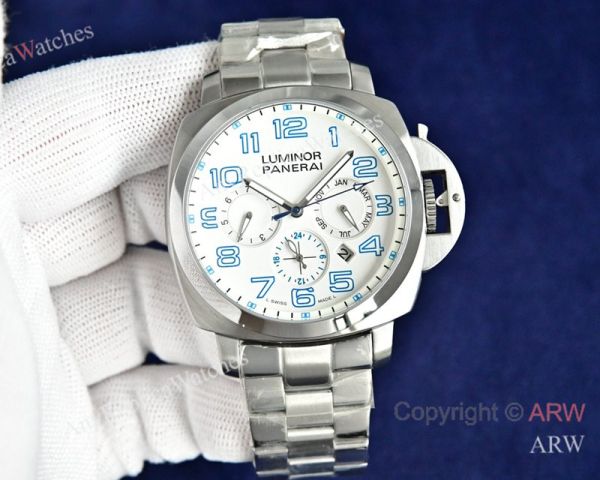 High Quality Replica PANERAI Luminor Silver Steel Strap Different Colors Face Dial Silver Stainless Steel Case Watch 44×12mm
