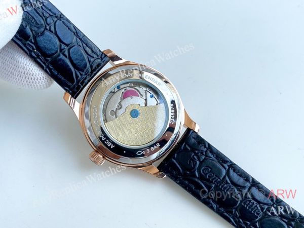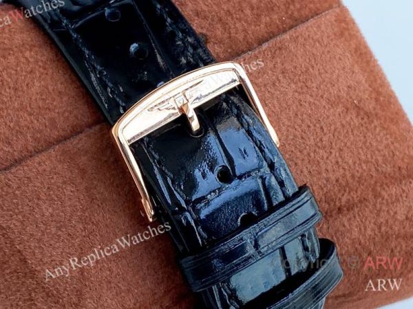 Replica LONGINES Men's Watch Black Genuine Leather Strap White Face Dial Rose Gold Case Watch 40*12mm