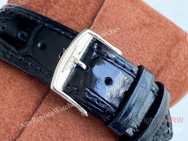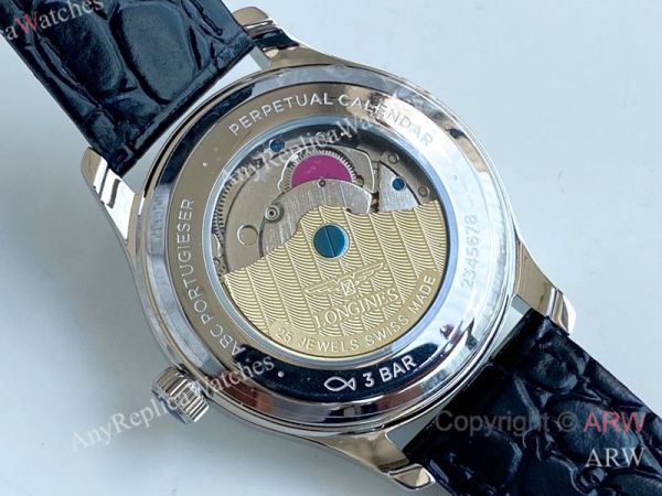 Replica LONGINES Men's Watch Black Genuine Leather Strap White Face Dial Silver Case Watch 40*12mm