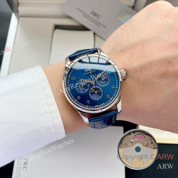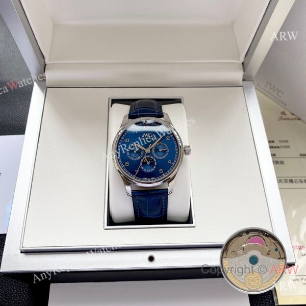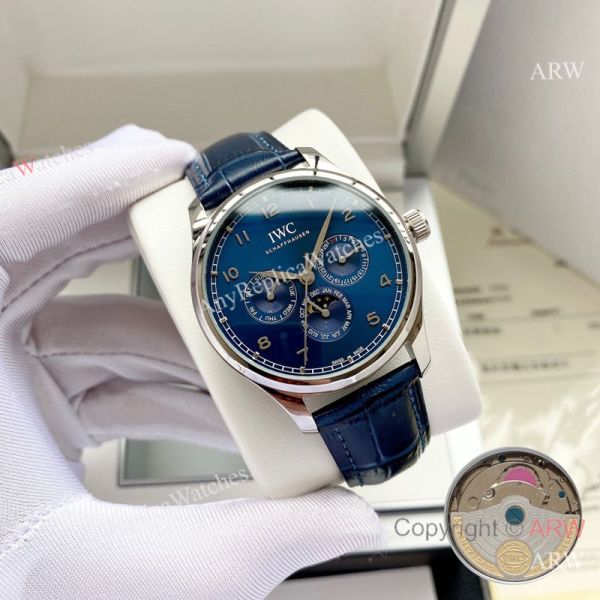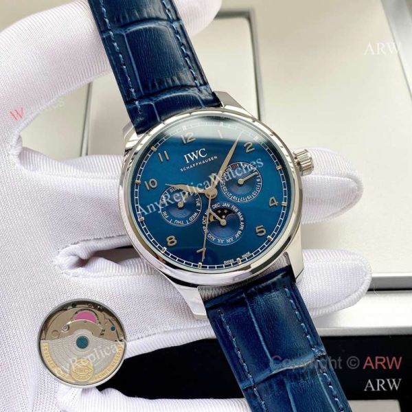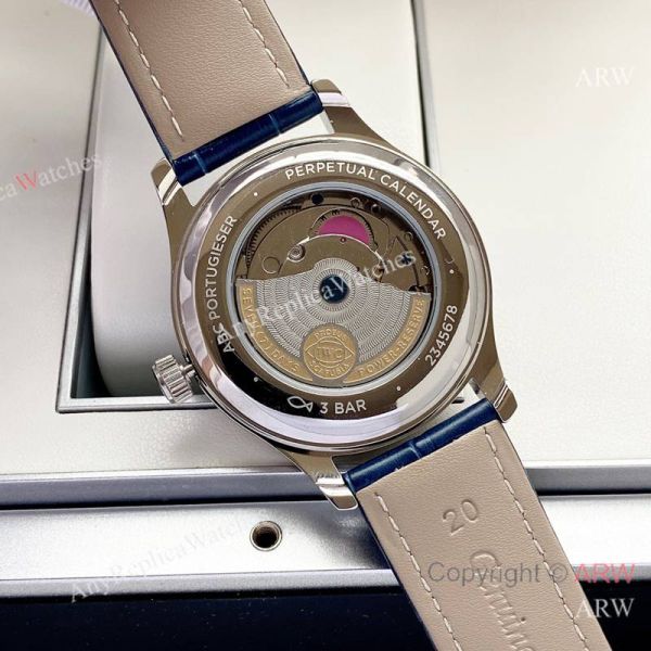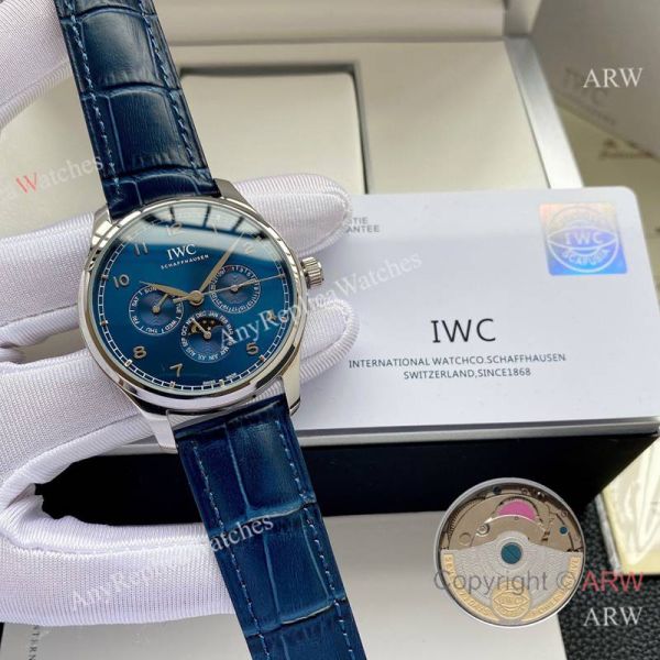 Replica IWC Different Colors Genuine Leather Strap Dark Blue Face Dial Silver Stainless Steel Case Watch 42mm