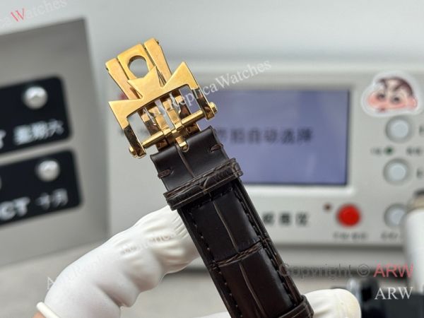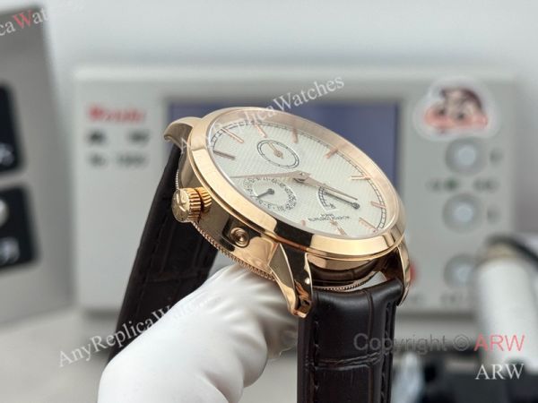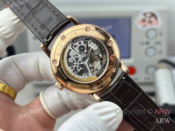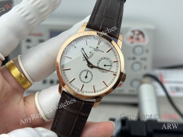 High Quality Replica VACHERON CONSTANTIN Traditionnelle Black Leather Strap White Face Dial Rose Gold Stainless Steel Case Watch 40×12mm
