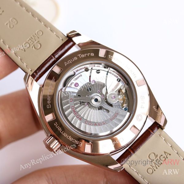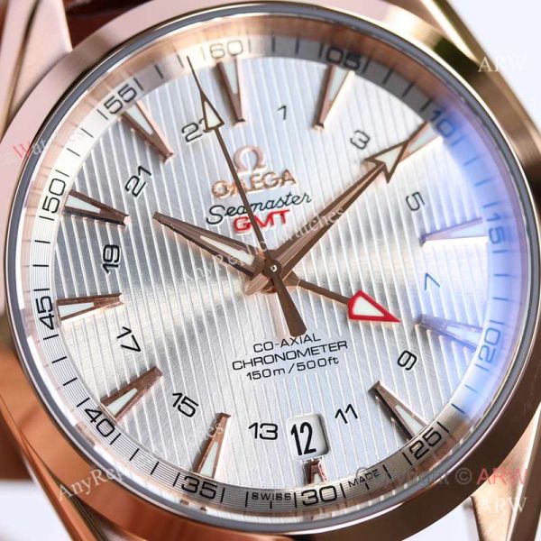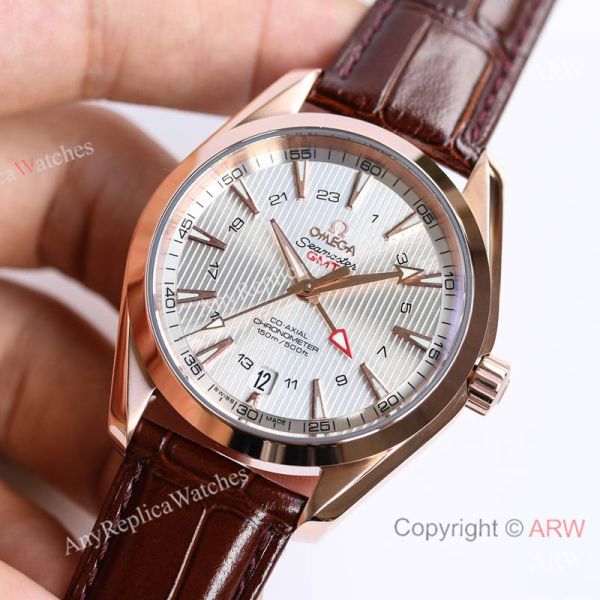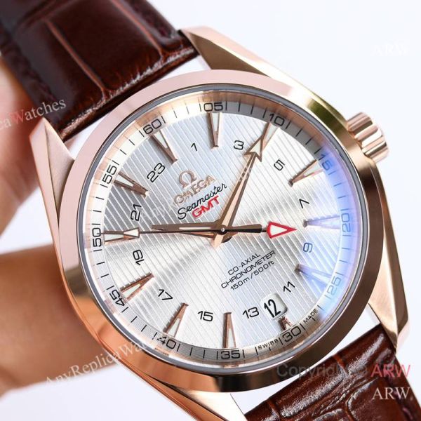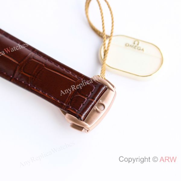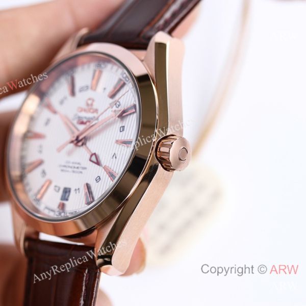 High Quality Replica OMEGA Seamaster Cowhide Brown 316 stainless steel Strap White Face Dial Rose Ceramic Bezel Fashion Watch 43mm