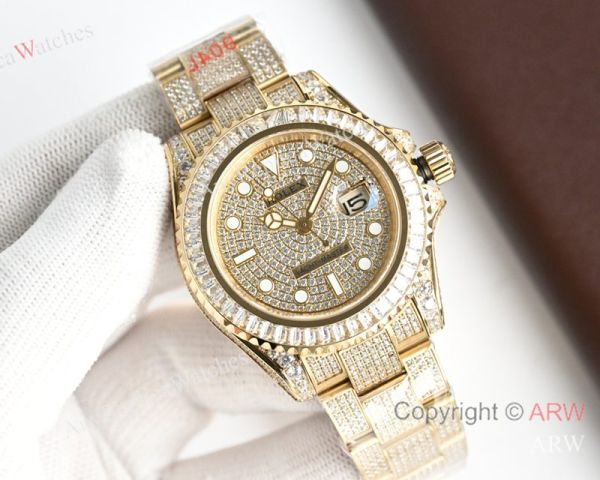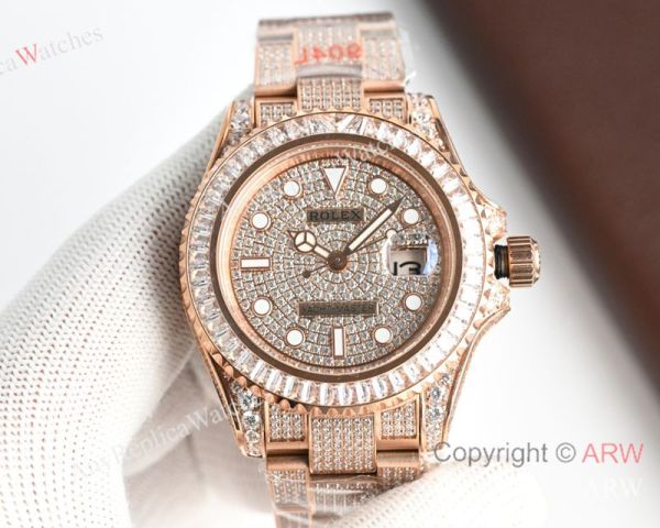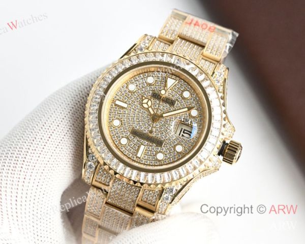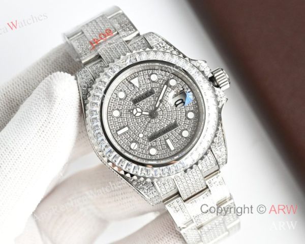 High Quality Replica Rolex Yacht-Master Different Colors with full diamonds 316 stainless steel strap Different Colors with full diamonds Face Dial Different Colors with full diamonds Bezel Men Watch 40mm