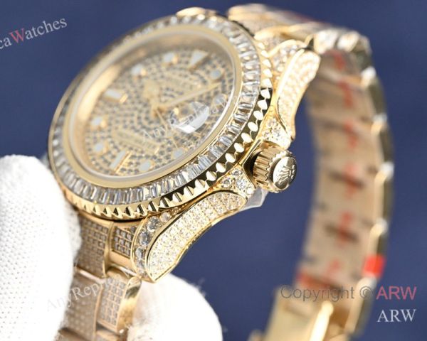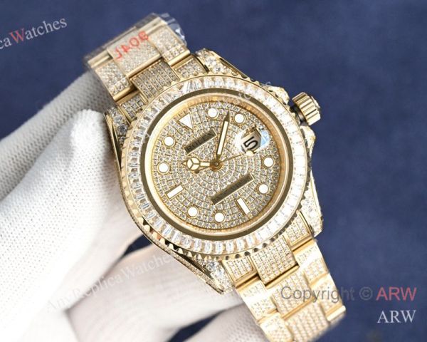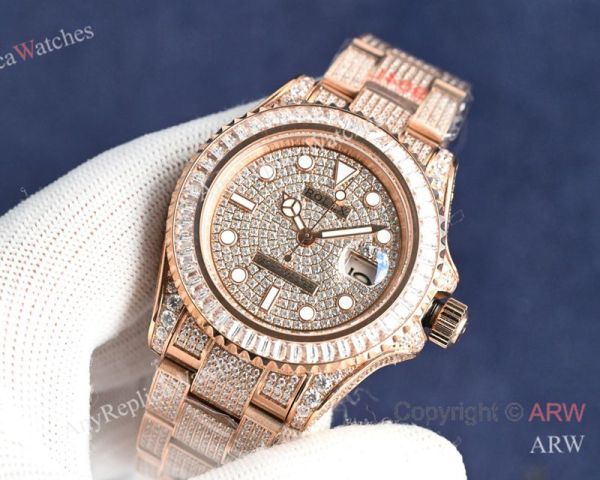 High Quality Replica Rolex Yacht-Master Different Colors with full diamonds 316 stainless steel strap Different Colors with full diamonds Face Dial Different Colors with full diamonds Bezel Men Watch 40mm