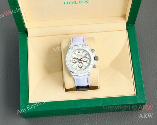 Rolex Cosmograph Daytona White Strap White Face Dial Watch Fashion size 40mm -Dial High-composite Carbon Fiber Bezel
