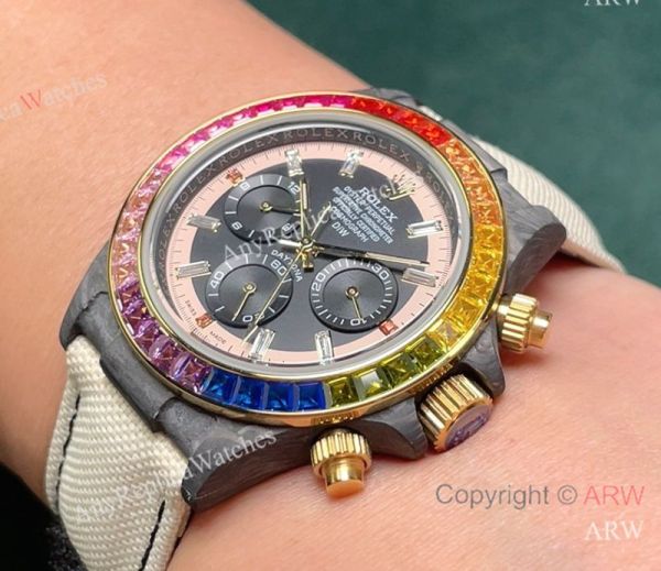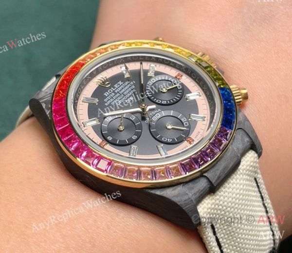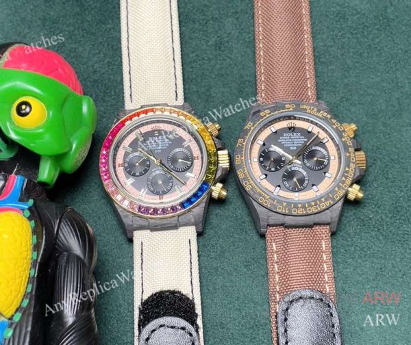 High Quality Replica Rolex Cosmograph Daytona Different Colors Strap 2-Tone Face Dial High-composite Carbon Fiber Fashion Watch 40*12.4mm