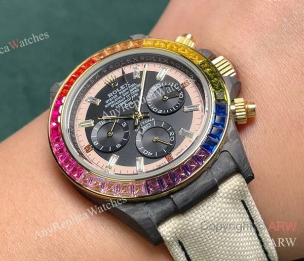 High Quality Replica Rolex Cosmograph Daytona Different Colors Strap 2-Tone Face Dial High-composite Carbon Fiber Fashion Watch 40*12.4mm