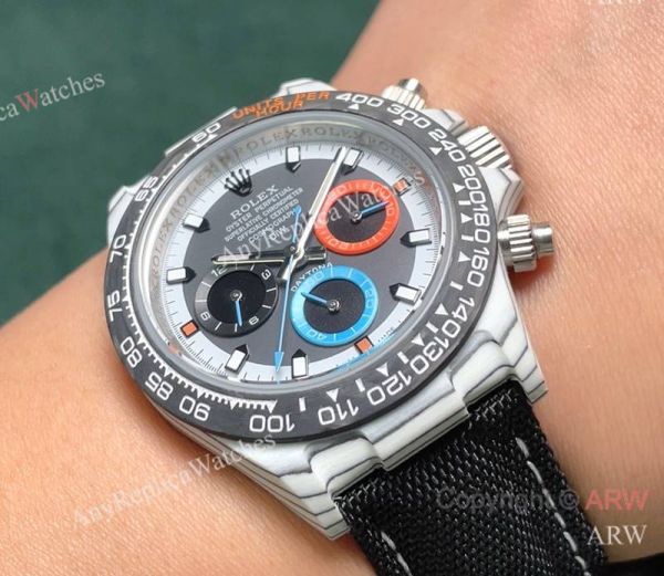 High Quality Replica Rolex Cosmograph Daytona Different Colors Strap 2-Tone Face Dial High-composite Carbon Fiber Fashion Watch 40*12.4mm
