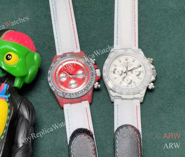 High Quality Replica Rolex Cosmograph Daytona Different Colors Strap 2-Tone Face Dial High-composite Carbon Fiber Fashion Watch 40*12.4mm