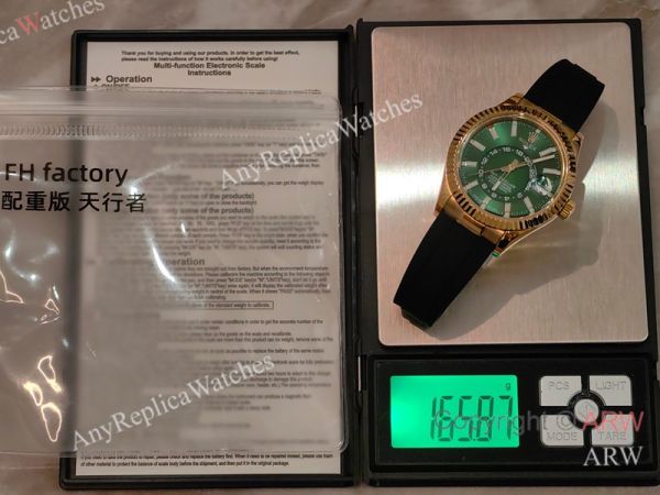 AR+ Factory Weighted Version Rolex SKY-DWELLER Green Face Rubber Strap Watch 42mm