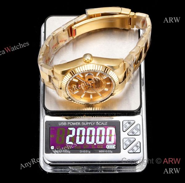 AR+ Factory Weighted Version Rolex SKY-DWELLER Gold Face 904L Yellow Gold Watch 42mm