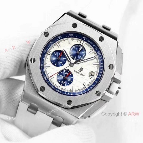 Stainless Steel Case White Structured Face Blue Inner White Rubber Strap Audemar Watch Replica