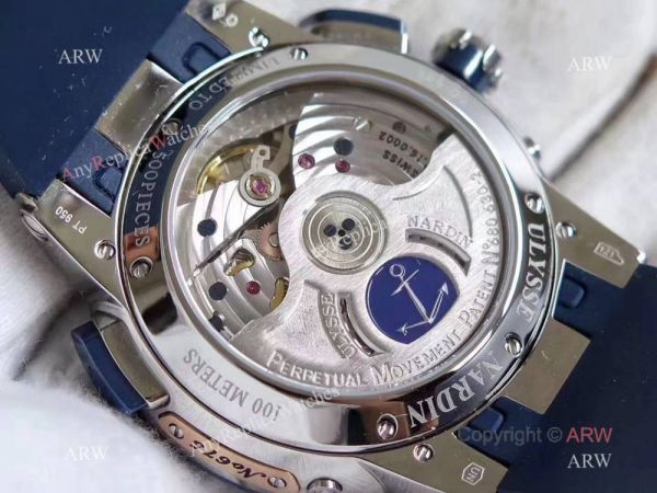 SS Watch Case Multifunction Dial Ceramic Bezel Rubber Strap Ulysse Nardin Blue Watch