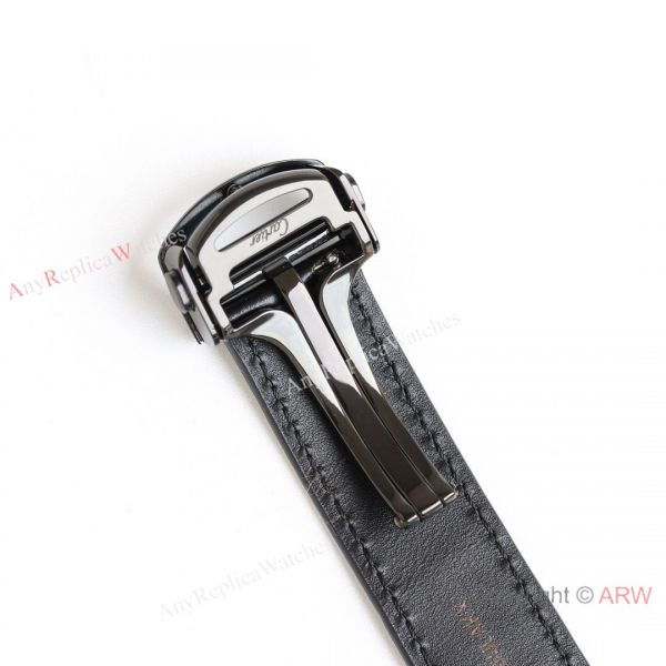 Watchband: Black Leather Quick-release watch bracelet. With Cartier Upgrade Deployant buckle