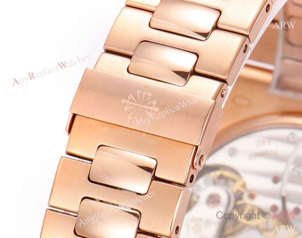 Watchband: High Quality 316l Stainless Steel coated Rose Gold watch bracelet. Buckle with Proper Patek Philippe Engraving.