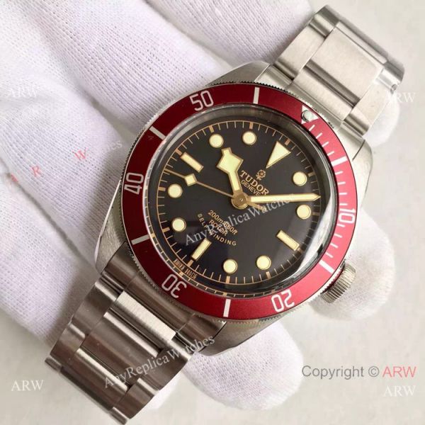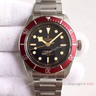 Swiss Replica Tudor Tudor Heritage black Bay red dial watch Stainless Steel Red Bezel
