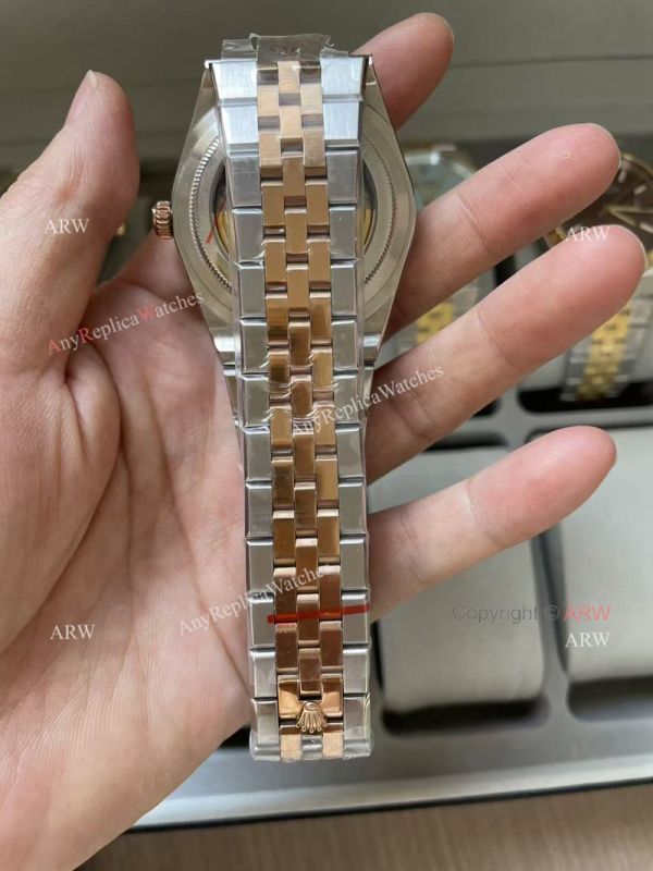 * Rolex crown micro etched at 12 o'clock on the glass, serial number between links.