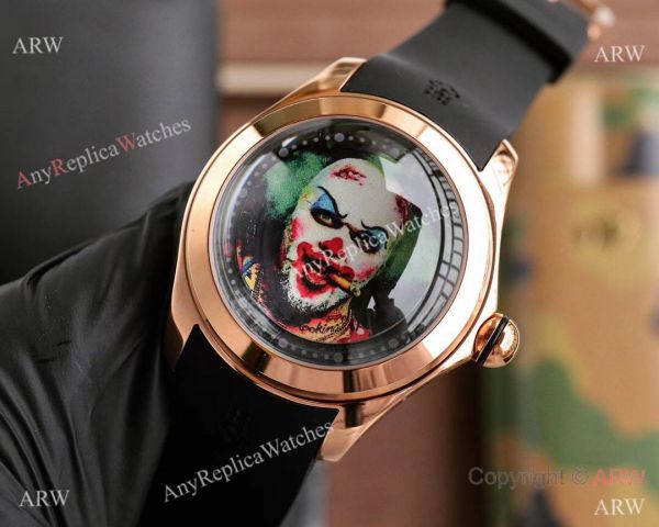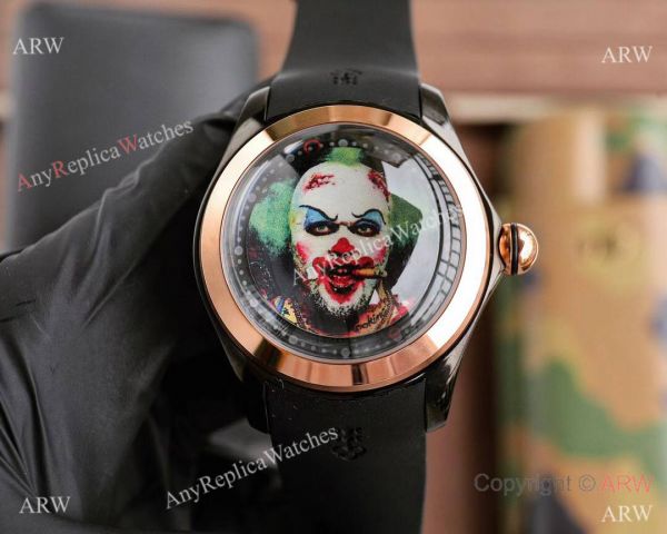 Rose Gold plated Stainless Steel 316L Case Rubber Strap Clown motif Dial Replica Corum Watch