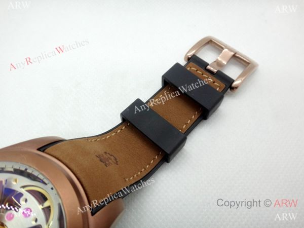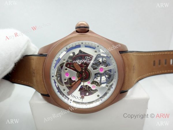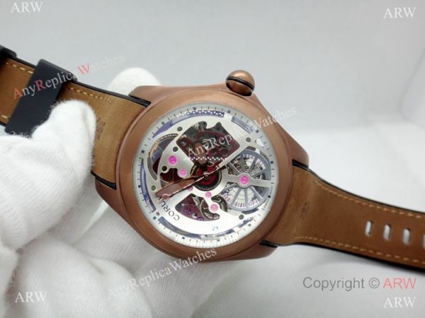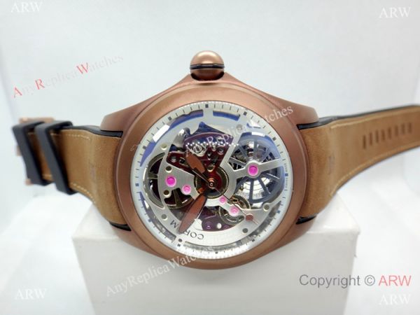 Brown watch Case White Skeleton face Brown Gummy Band Replica Corum Watches
