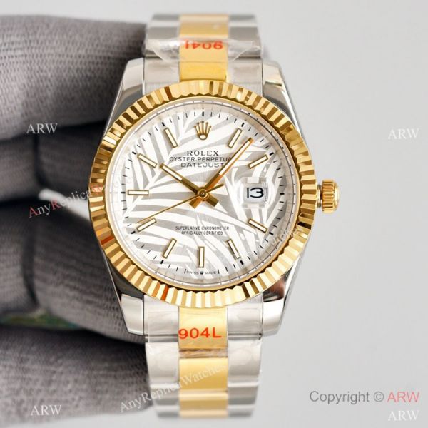 The Rolex Oyster Perpetual Datejust II 41mm with a fluted bezel, NEW Green Palm dial and Two Tone Rolex Oyster bracelet