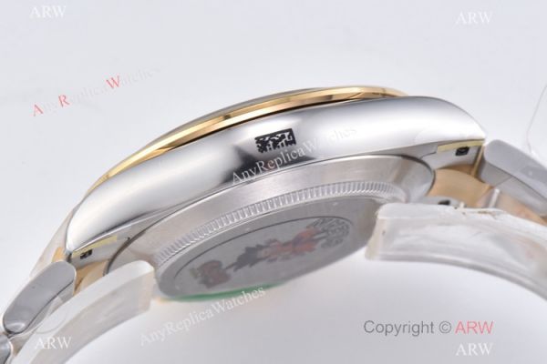 Strap: 904L Two Tone Band with Oyster Buckle, Screw Links, Serial Number Between Links. Solid End Links.