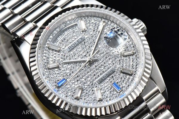 We guarantee this is the higher quality CS Factory Rolex Day Date I Diamond-Paved Face 36mm Replica watch you can find in the replica market. Swiss Grade One Replica Rolex DD I Watch have the best of everything.