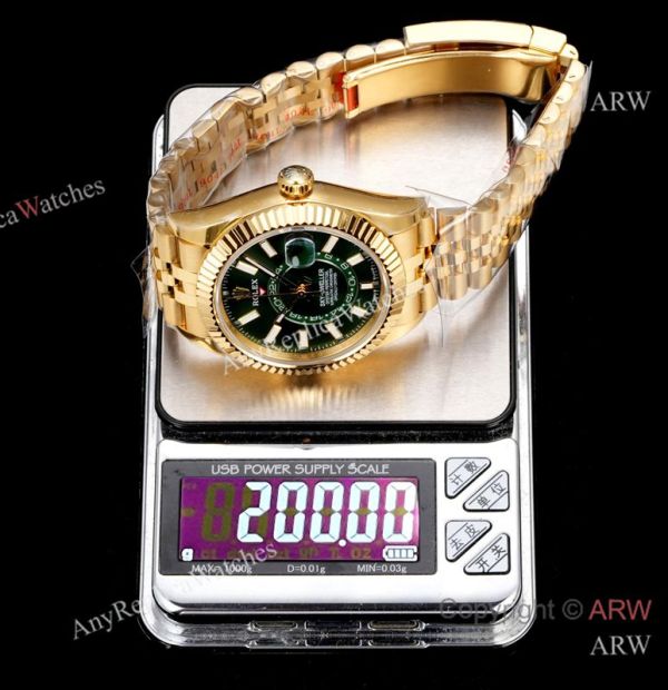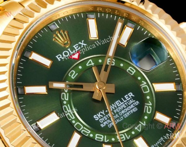 AR+ Factory Weighted Version Rolex SKY-DWELLER Green Face Yellow Gold Watch 42mm