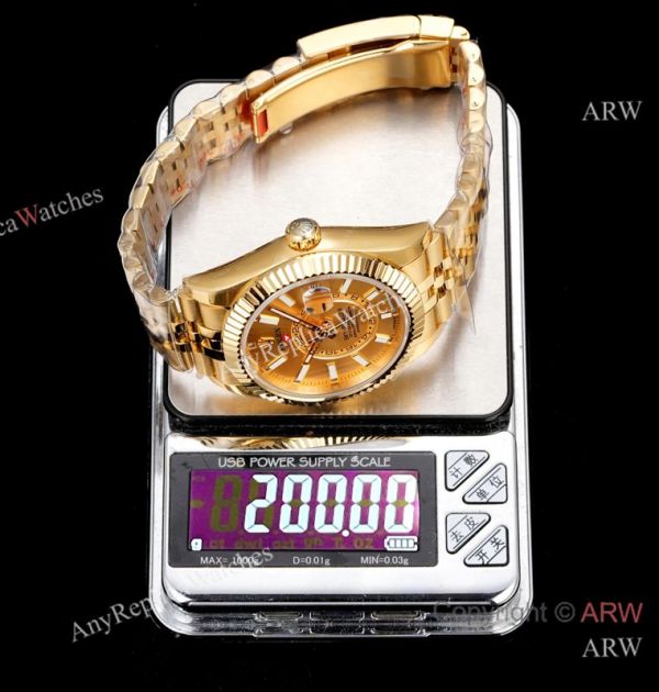 AR+ Factory Weighted Version Rolex SKY-DWELLER Gold Face 904L Watch 42mm