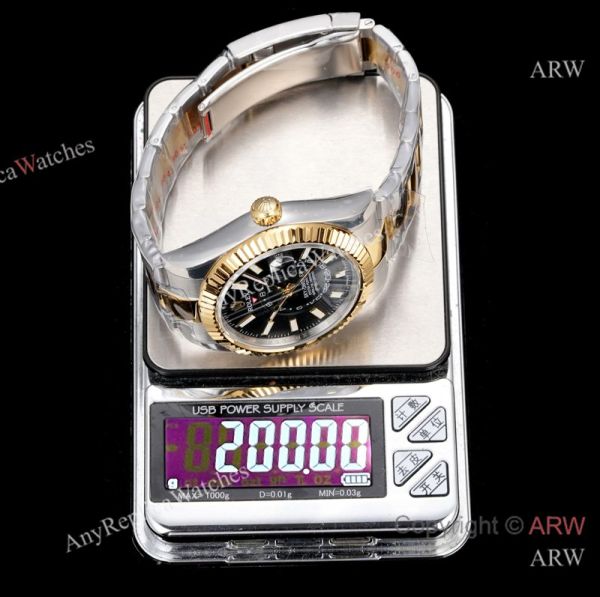AR+ Factory Weighted Version Rolex SKY-DWELLER Black Face Two Tone Watch 42mm