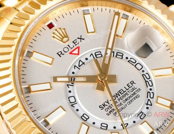 Replica ROLEX SKY-DWELLER Gold 904L Oyster Three/Five-Bead Stainless Steel Strap White Enamel Radiant Sunburst Face Dial Gold Case Watch 42mm