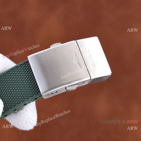 Stainless Steel Watch Case - Olive Green Ceramic Bezel coated Gold - Olive Green Face - Olive Green Rubber Strap Replica Watch