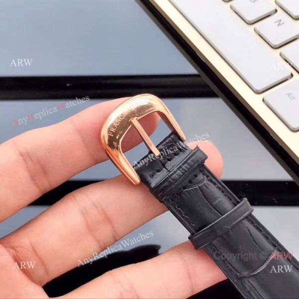 High Quality Black Leather Watch Band with Franck Muller Logo on Buckle