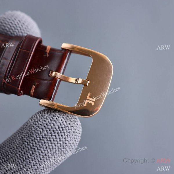 Rose Gold coated 316L Stainless Steel Case Silver Dial Leather Strap Men's Watch